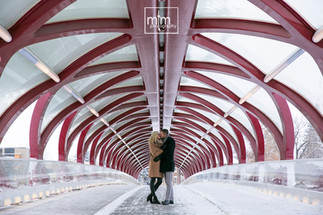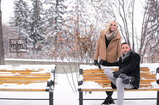 Wrapped in cozy coats and scarves, Lauren & Dan turned a frozen park into their personal backdrop. From playful moments on park benches to quiet embraces under snow-dusted trees, every frame captured the warmth of their connection against the icy setting. The crisp white snow and muted tones of the Canadian winter created a timeless, cinematic feel for their portraits.