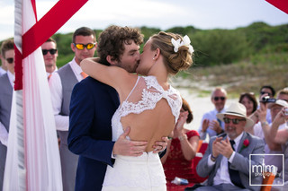 After the vows, Amanda and Jack embraced on the shoreline with the Caribbean Sea as their backdrop. The series of portraits captures tender kisses, quiet embraces, and the golden glow of the sunset, highlighting both the couple and the natural beauty of Playa del Carmen.